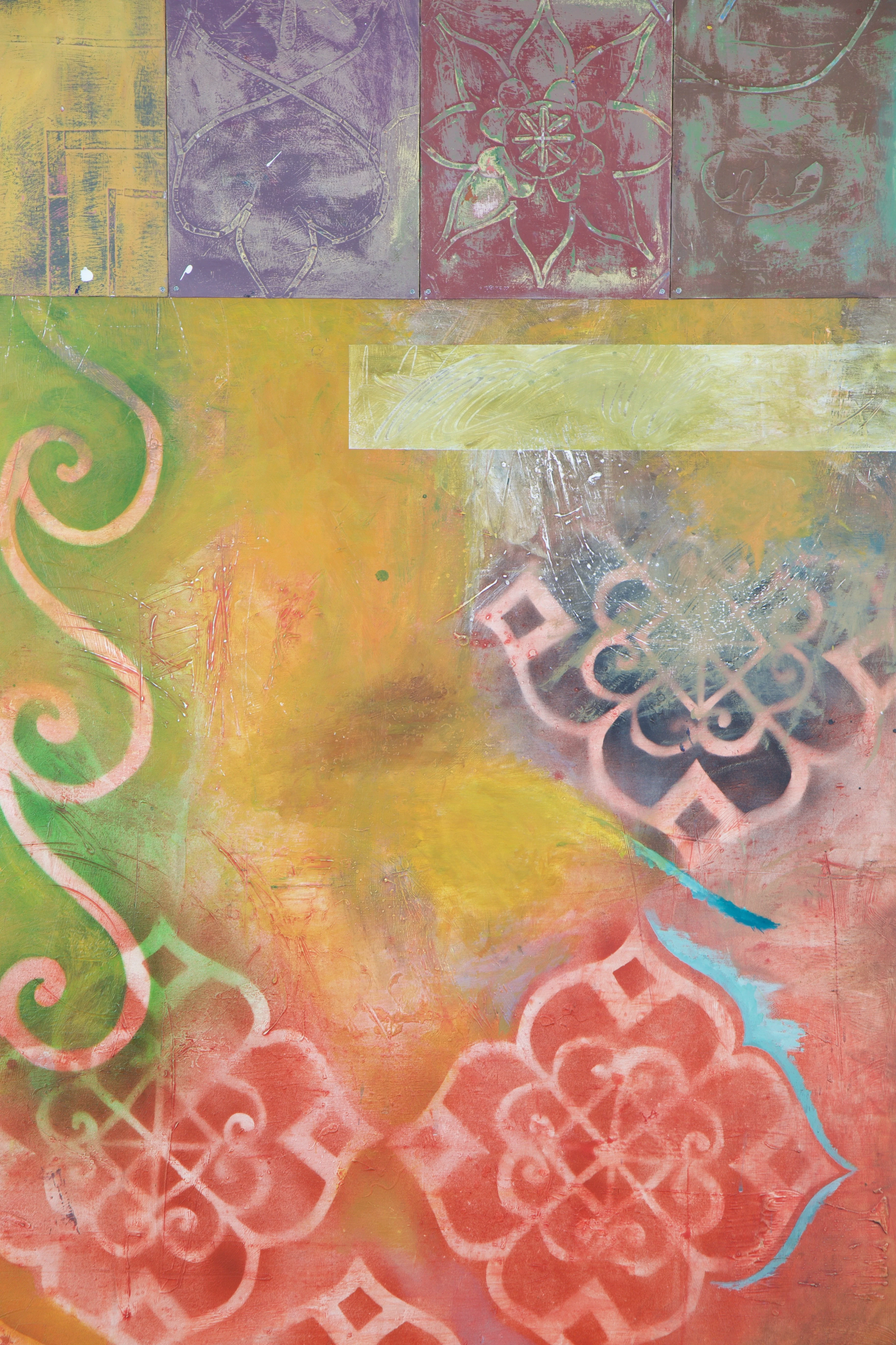 Acrylics, spray paint on wood